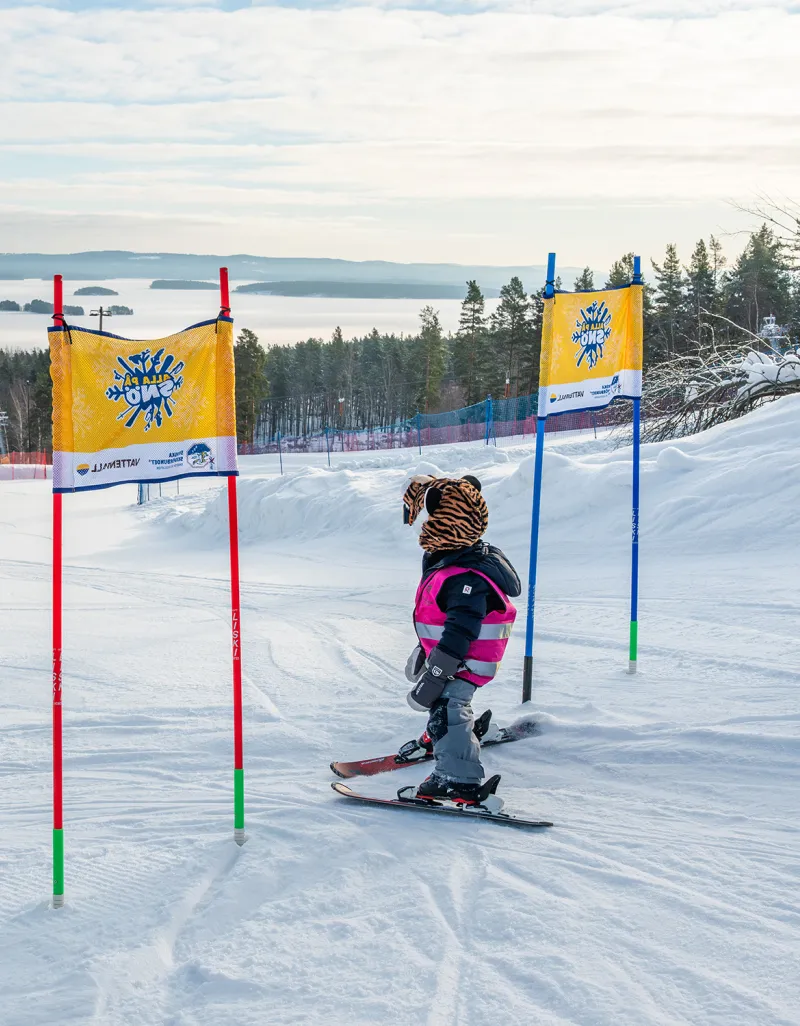 I Falun finns förskolan som tillbringar en dag i veckan i slalombacken. Det är ett ypperligt tillfälle att träna koordination och få in rörelseglädje i vardagen. Men kräver många hjälpande händer, särskilt när det är kallt och svårt.