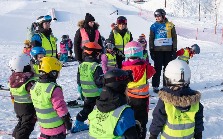 För Josefina Jirelius, som har åkt skidor sedan barnsben, var det självklart att söka jobb på Norlandia i Falun när hon fick höra talas om skidprofilen. 2019 var den första säsongen med skidinriktningen och något år senare hakade även den andra Norlandiaförskolan i Falun på. De tar över backen efter lunch, när Toppstugan och Dalskidan är klara. Och kanske är de unika i Sverige med upplägget.